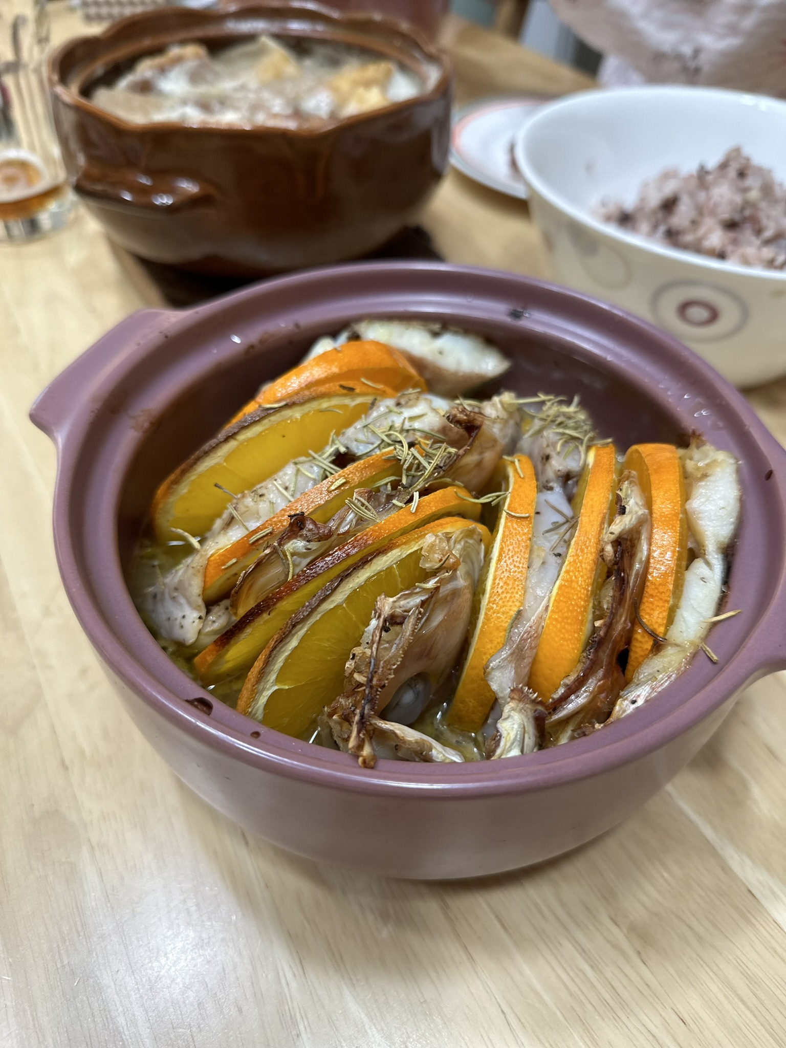 저녁은 '오렌지 맛 도미 오븐 찜구이'와 '아게다시도후' 그리고 '베이컨말이 오니기리', 역시 전부 처음해 보는 요리다. 결론부터 얘기하자면 도미는 살이 너무 적고 생선을 좋아하지 않으면 조금 비릿할 거 같다. (아내는 생선을 별로 좋아하지 않는다!!) 두부 요리는 간이 약하다. 튀긴 두부를 간장에 조금 조리는 과정을 중간에 넣어야 할 것 같다. 베이컨 말이는 말해서 무엇.. 맛있을 수밖에 없다.. (딸이 예쁘게 말아주었다.)