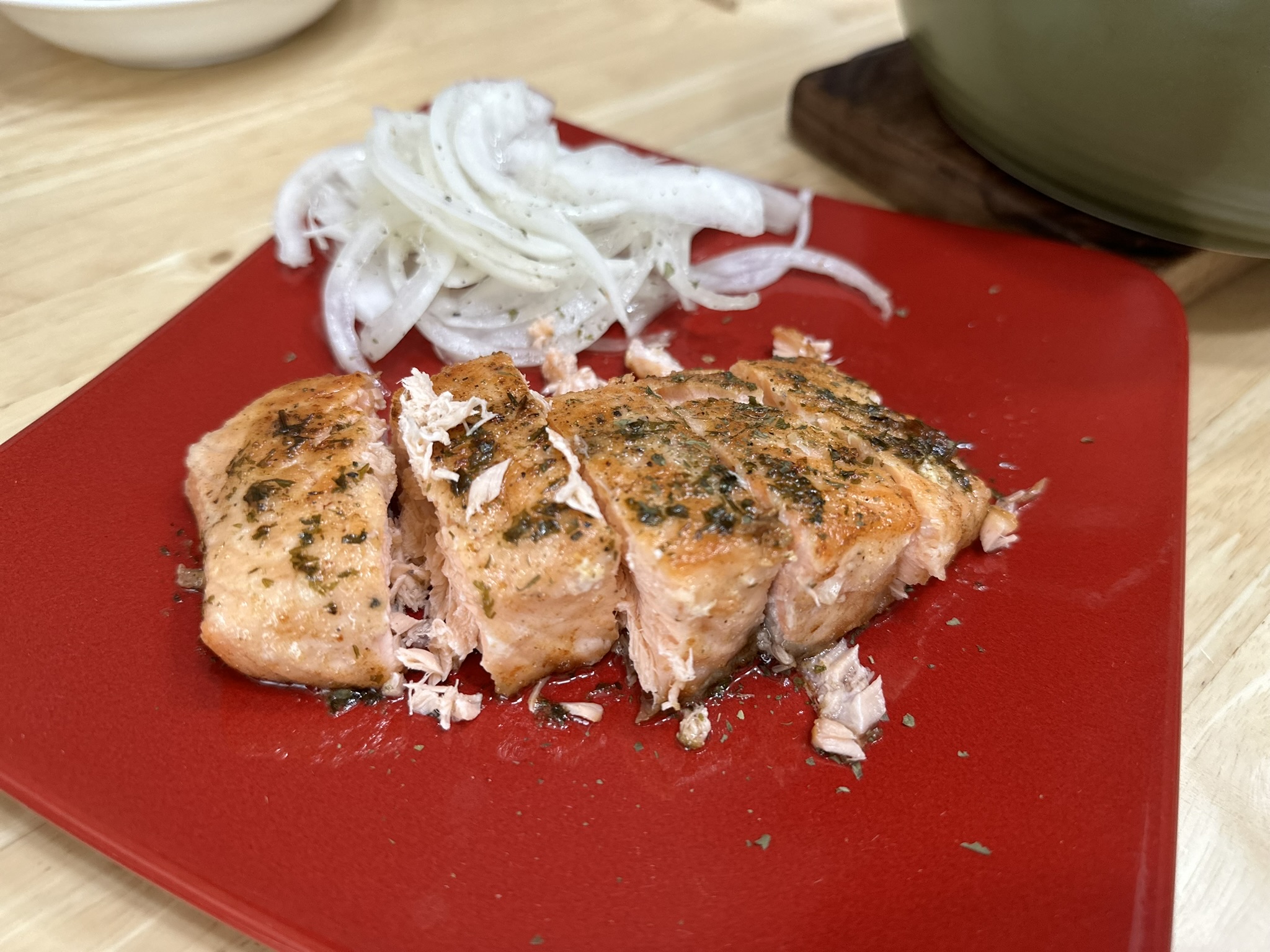 올해는 딸이 궁금해하는 오니기리를 만든다며 오랜만에 요리 책을 꺼내 들었다. 요리도 일종의 체험 학습이니까 재밌어한다. 맛있는 걸 요리해서 먹는다는 것보다 요리 자체가 즐겁다. 새로운 경험이니까. 내 생일이지만 딸아이와 함께 주방에 섰다. 하루 전날 사둔 연어를 살짝 헹군 뒤 10분 정도 양념에 절인 후 박력분을 얇게 입히고 구워내면 끝나는 아주 쉬운 요리다. (칼질 안 해도 먹기 쉬운데, 괜히 칼질을 했다. 칼질하다 생각나서 한 컷 찍어 본다. )