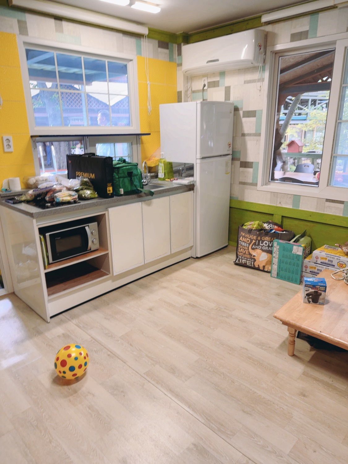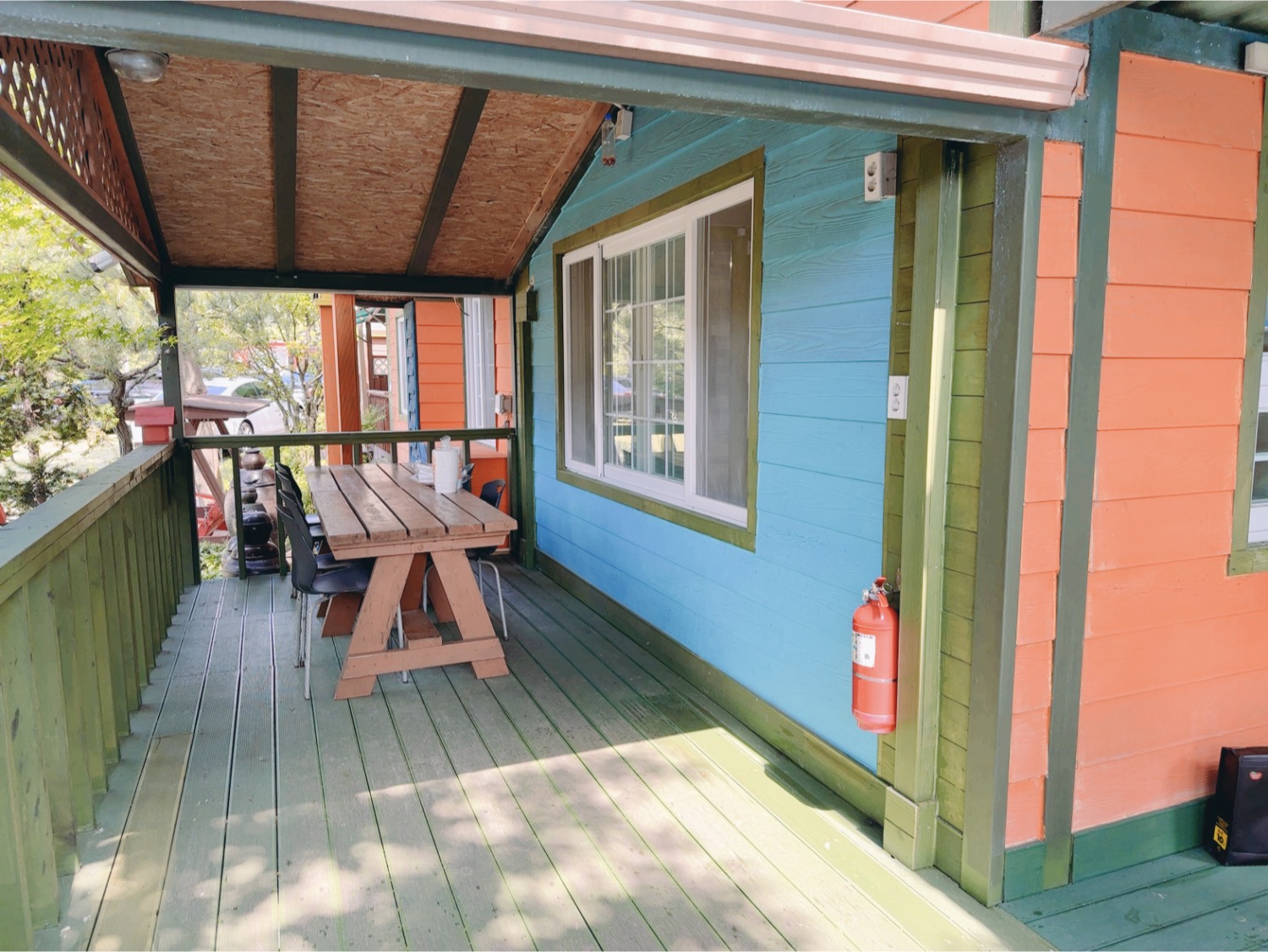 예약을 회장님이 하셔서 가격은 모르겠지만 작은 방이 15만 원이었던 것 같다. 큰 방, 작은 방 한 채를 빌렸고 아내 모임이라서 몸만 따라가는 입장이라 무지한 상태다. 수건을 제공해 주지 않는 걸 가서 알았는데. 역시 아내는 이 정보를 전달받고 수건을 챙겨 왔다. 아래층 작은 방엔 세면대가 없어 불편했지만 위 층 큰 방에는 세면대도 있었다.