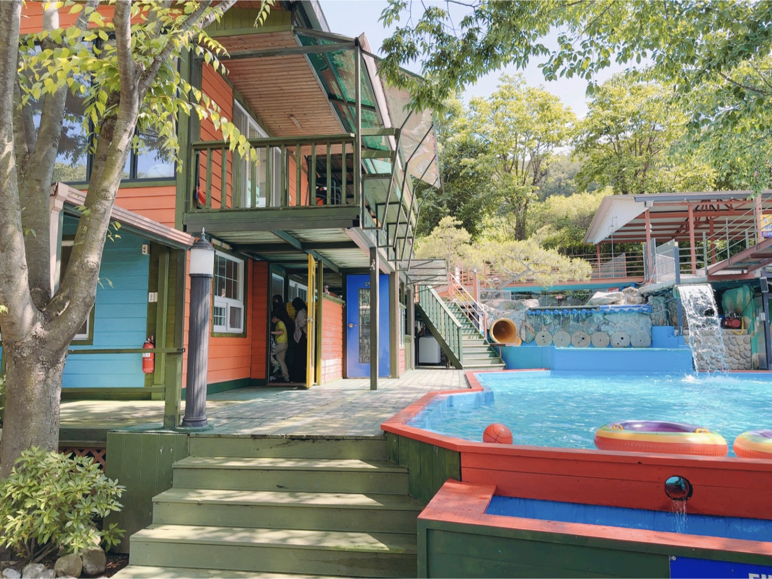 도착해 보니 이 펜션을 선택한 이유가 풀장이었다. 물을 따라 올라가 보니 계곡물인지 지하수인지 알 순 없었지만 (계곡물 같은데) 충분히 깨끗해 보였다. 물 위로 떨어진 나뭇잎 말곤 눈에 띄는 물건은 없었다. 튜브도 떠다니고 있었지만 대부분 튜브를 가지고 왔다. 물은 차가운 편이라 아들은 물을 엄청 좋아함에도 불구하고 많이 놀진 못했다. 하지만 체력 가득 누나는 시작부터 끝까지 물에서 나오질 않았다.