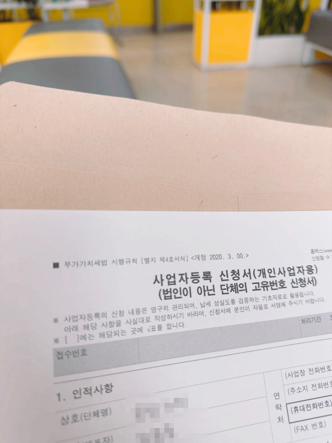 대구 북구청 바로 뒤에는 북구세무서가 있다. 북구청에서 발급받은 신고 확인증을 들고 바로 세무서로 향했다. 역시 입구에서 친절하게 안내를 받았다. 사업자 등록을 진행해 주시는 분은 조금 퉁명스럽게 말했지만 빠른 업무 처리를 해줬다. 뭐니 뭐니 해도 깔끔한 처리가 최고다.