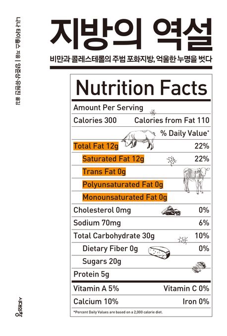 우리 몸에 있는 지방은 위험하다는 인식이 있다( 물론 내장 지방이 그렇다). 그 인식을 그대로 먹거리로 옮긴다. 먹는 지방도 자연스럽게 위험하다는 인식이 되어 버린다. 육식은 종교적으로 때론 누군가의 이익 때문에 누군가의 명예 때문에 오해받아왔다. 지방의 누명이 벗겨지기 시작한 최근에도 지방은 여전히 오해를 받고 있다. 여전히 연구 지원이 어렵다(식품업체와 각종 의학협회의 대척점에 있다). 악당은 밀가루와 탄수화물이 되었지만 지방은 여전히 억울하다.