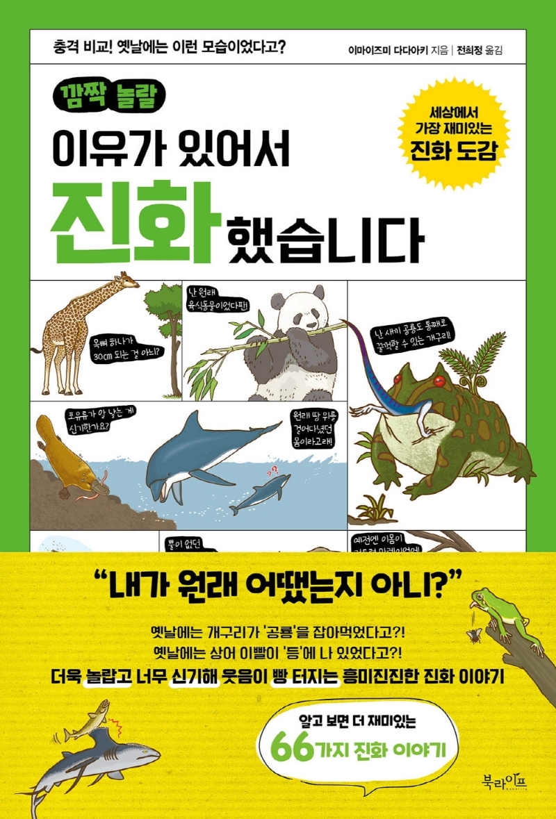 사실 이 책 전에 이유가 있어서 진화했습니다 라는 책이 있어서 인지 "깜짝 놀랄"이라는 단어를 더 붙였다. 이마이즈 다다아키의 "이유가 있어서~" 책은 재미나게 잘 엮여서 있어서 아이들이 정말 좋아한다. 호기심을 끌 만한 내용들이 잘 이어져 있다.