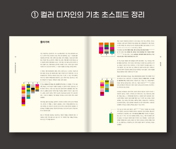 어릴 때부터 스케치는 그럴듯하게 하면서 색칠만 하면 엉망진창이 되는 나에게 색이라는 것은 꽤나 어려운 영역이었다. 분명 공식 같은 색 조합이 있을 것 같아서 이 책을 기대하며 읽게 되었다. '들어가며'에 적힌 저자의 생각은 내가 생각하는 바와 달랐다. 저자는 "잘못된" 색 조합은 없다는 신념을 가지고 있었다. 이 책은 디자인 카피할 방법을 가르쳐 주는 것이 아니라 디자이너들이 자신감 있고 효과적으로 색을 사용할 수 있도록 격려하기 위해서 적었다고 한다.